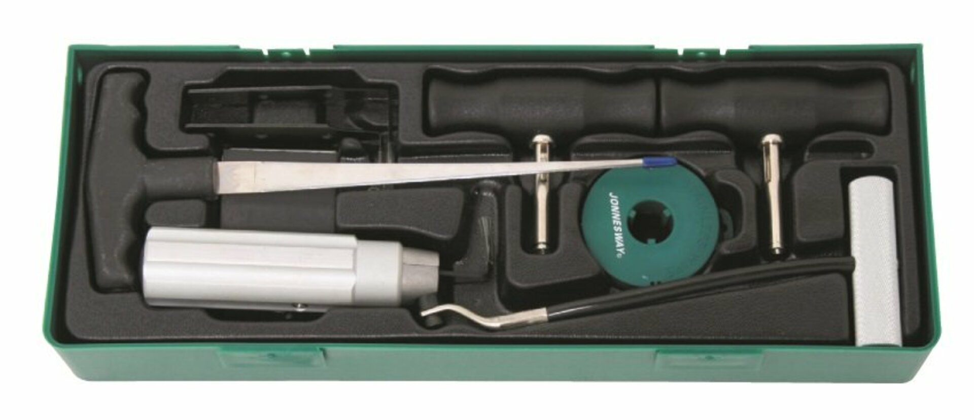 Souprava - modul přípravků na vyřezávání lepených autoskel JONNESWAY AB10001SPObsahuje nástroje potřebné k pohodlnému vyříznutí skla z karosérie.