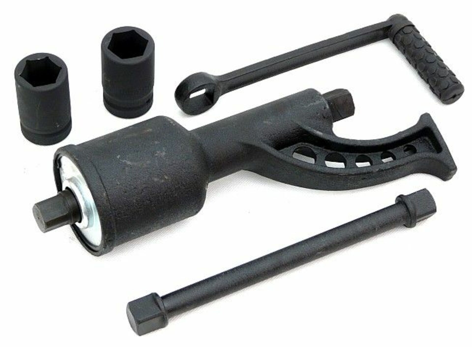 Silný utahovák určený pro montáž a demontáž nákladních kol a spojů větších strojů.